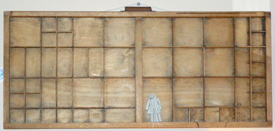 An antique printer's tray, bought off eBay last week, now propped up on my desk behind the laptop. Someday I will paint it and fill it with fascinating found objects and hand-made treasures (Kirsty: I definitely blame you for this one ;o)