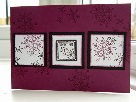 This one's from Pat, my Stampin' Up! 'mummy' and friend from Bromley. Love the striking colour scheme.. want that Dec 25th stamp! (and I had to laugh at your message inside the card.. ;o))
